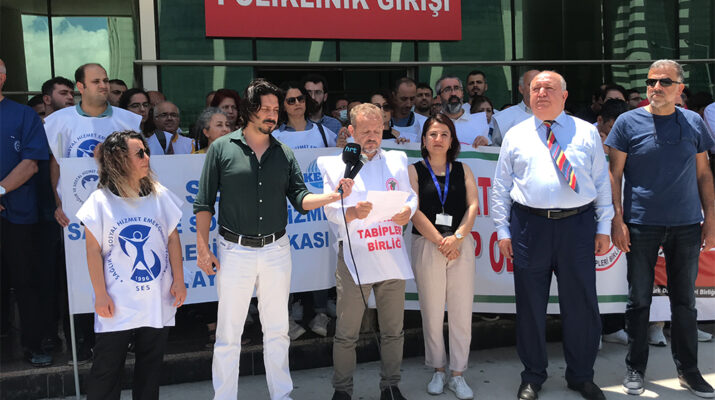 Hatay Eğitim ve Araştırma Hastanesi önünde yapılan basın açıklamasında bütün hekimler adına konuşan Hatay Tabip Odası Başkanı Sevdar Yılmaz ‘Emeğimizin Hakkını Aldığımız Sağlıklı Bir Gelecek İçin G(ö)REV Başındayız’ dedi.