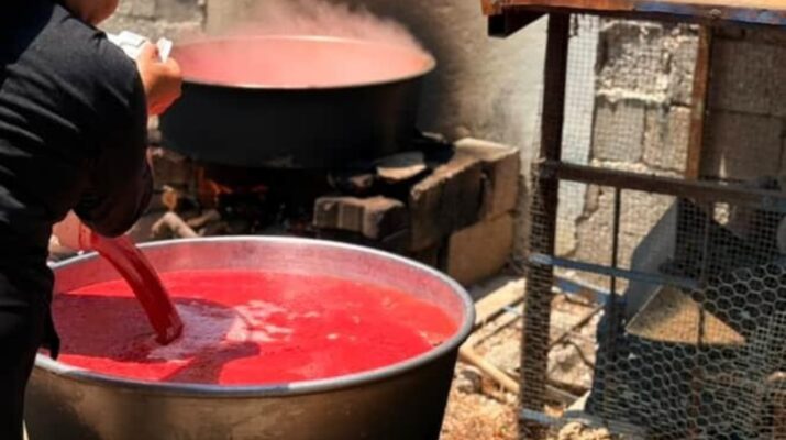 Hatay’ın birçok ilçesinin kırsal kesimlerinde odun ateşinde hazırladığı organik salça mesaisi hız kesmeden devam ediyor.