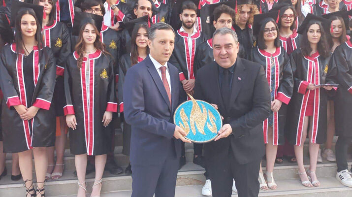 Mezuniyet Törenin de ayrıca Almanca Öğretmeni Gülnaz Habip ve 12. sınıf öğrencileri, 2020-2021 Okul Aile Birliği Başkanı Vecihe Anjelin Bülbül, 2021-2022 Okul Aile Birliği Başkanı Özgür Betül Özgürsoy, Merhum Hayırsever İş İnsanı Nevzat Şahin’in kızı Esen Şahin Mısırlıoğlu, İl Milli Eğitim Müdür Vekili Zülale Yılmaz ve Merhum Hayırsever İş İnsanı Nevzat Şahin’in Eşi Sevsen Şahin’e çiçek takdim ettiler..