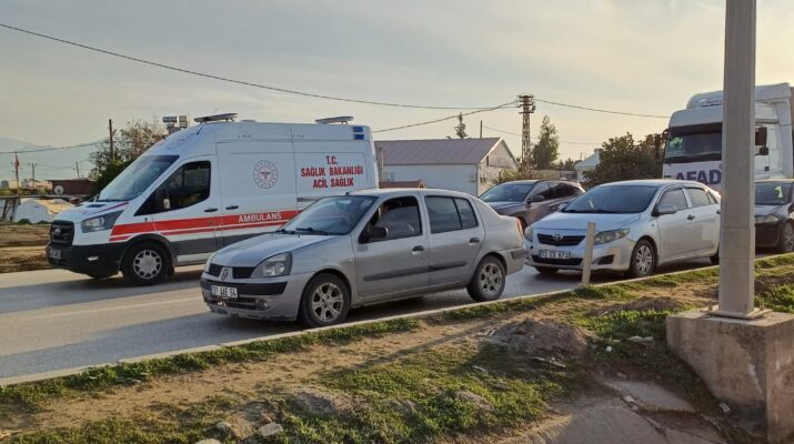 Fotoğrafta Antakya-Samandağ karayolunun yoğun trafiğinde emniyet şeridi üzerinden ilerlerken öte yandan emniyet şeridini ihlal eden sürücülere megafondan uyarı yapan bir ambulans sürücüsü görülüyor.