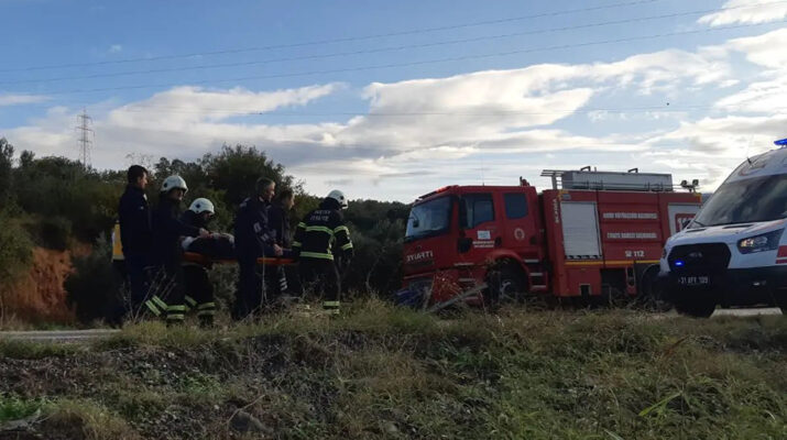 Hatay’ın Erzin ilçesinde uçuruma devrilen otomobilin sürücüsü, itfaiye ekiplerince sıkıştığı yerden çıkarıldı.