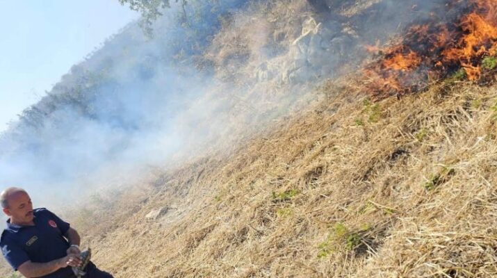 Hatay’ın Antakya ilçesinde çıkan anız yangınında alevlerin içinde mahsur kalan kaplumbağa, HBB İtfaiye ekiplerince kurtarıldı.