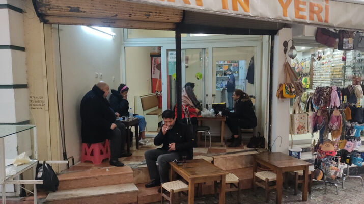 Antakya’nın yayalaştırılmış tek caddesi Saray Caddesine bakan bir ara sokakta ki çay ocağı, bastıran yağmur ile birlikte insanların sığındıkları limanı oldu.