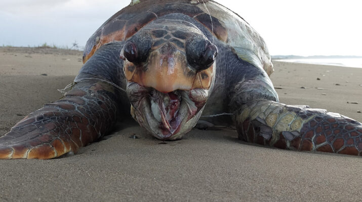 Hatay Samandağ Çevlik Mahallesinde denizde yüzen vatandaşlar suda Deniz kaplumbağası yavru caretta carettayı çuval iplerine dolanmış halde gördü. Çevrede cankurtaran görevi yapan ekipler boynu çuval ipiyle sıkışan yavru Deniz kaplumbağasını sudan çıkardı, büyük bir titizlikle çakıyla boynuna dolaşan ipi keserek boğulmaktan kurtardı.