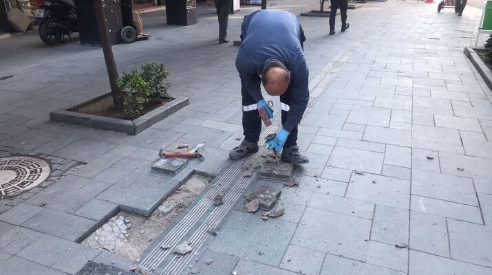 Kentin en işlek ve hareketli caddelerinden olan caddede yerinden oynayan kaldırım taşları, ekipler tarafından sökülüp tekrardan onarıldı.
