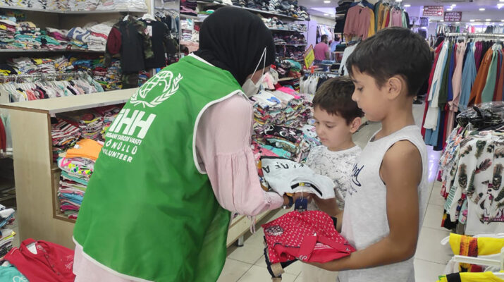 Hatay’ın Dörtyol ilçesinde, İnsan Hak ve Hürriyetleri İnsani Yardım Vakfı (İHH) tarafından yetim ve ihtiyaç sahibi ailelerin çocuklarına kıyafet ve ayakkabı yardımı yapıldı.